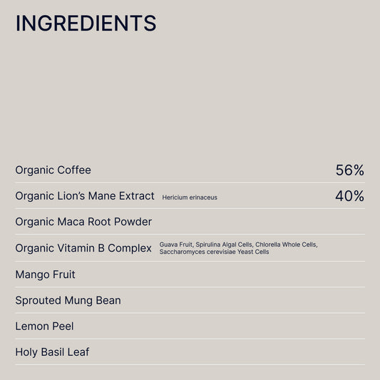 - Mushroom Coffee Super Blend: Rich, robust coffee taste, complemented by the subtle earthy notes of Lion’s Mane.
