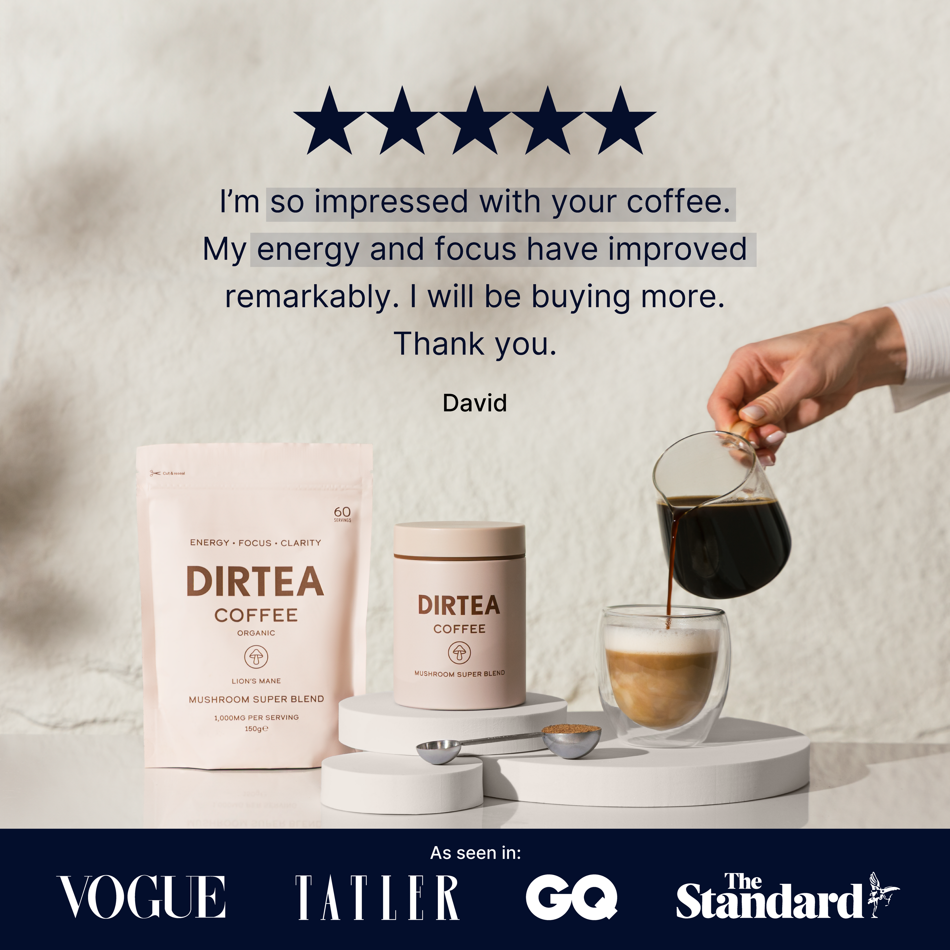 †In a survey with 1,500 participants who use DIRTEA Lion's Mane on a regular basis.