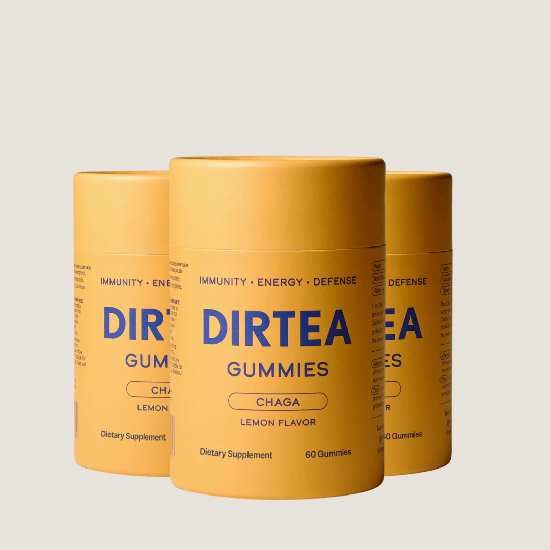 DIRTEA Chaga Gummies combine the power of 3,000mg of Chaga per serving with 100% of your daily recommended intake of Vitamin C and Zinc.