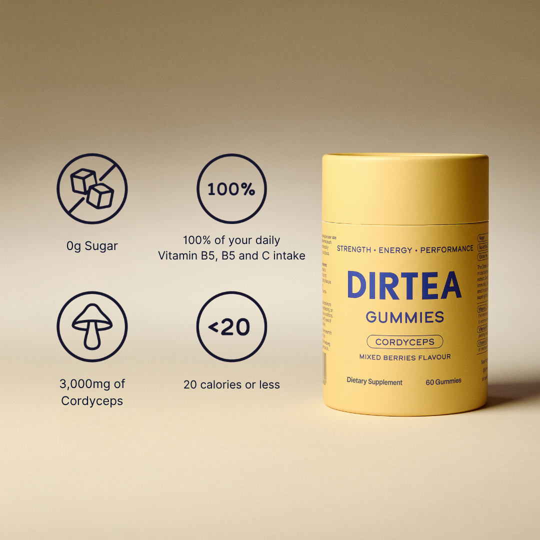 Delicious berry-flavoured gummies with Cordyceps, B3, B5, and C to boost energy, endurance, and vitality - offering clean, sustained energy all day long.