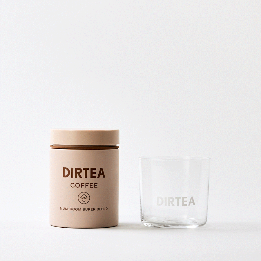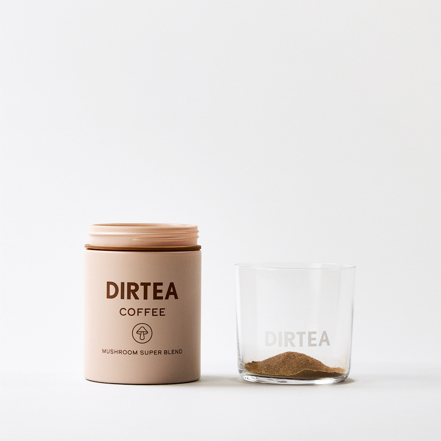 - Add a 2.5g scoop of DIRTEA Mushroom Coffee into a small mug