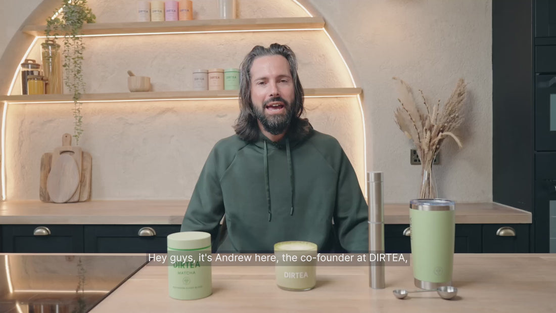 - Add a 6g scoop of DIRTEA Matcha powder to a cup