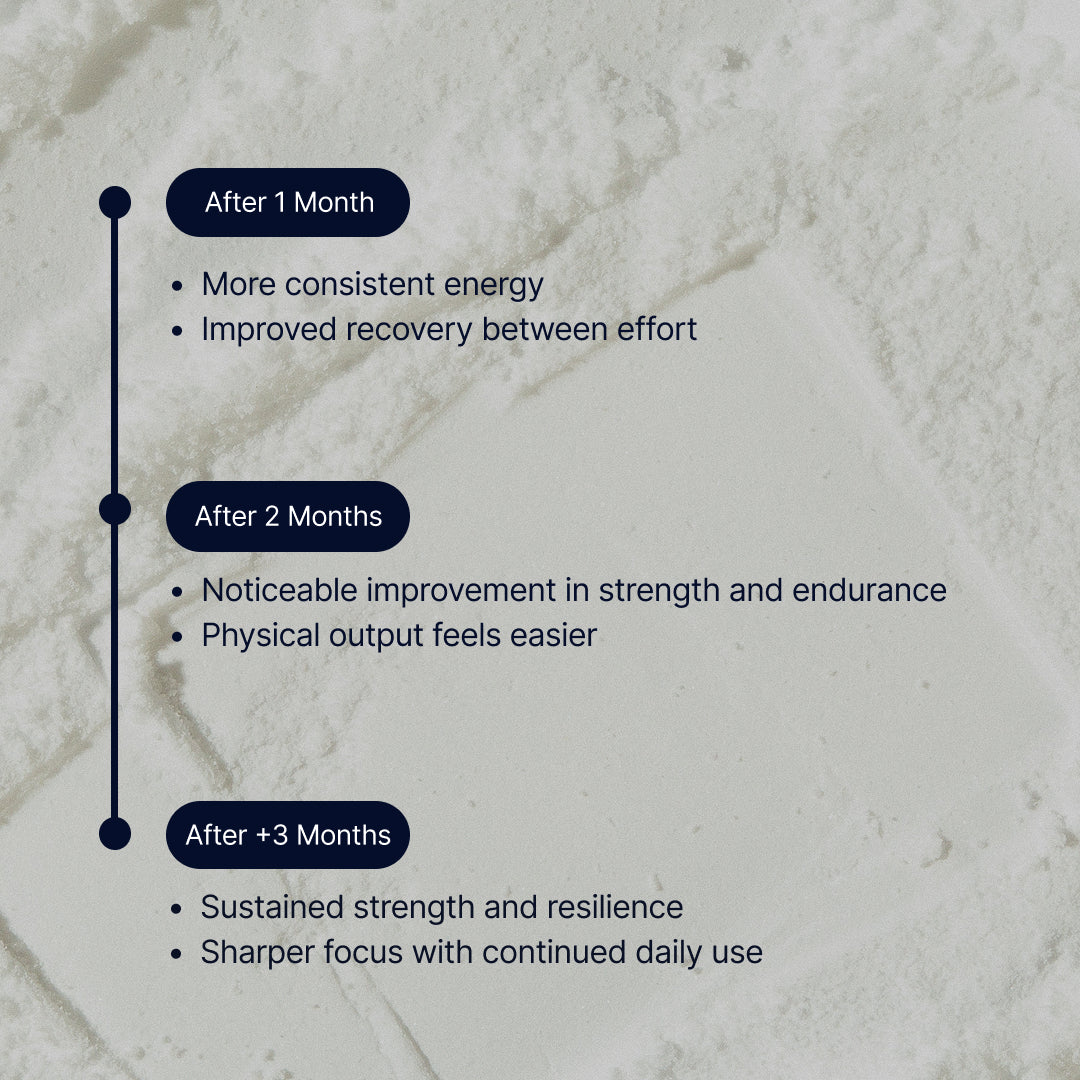 Together, they support energy, strength, recovery, and long-term structural health. No flavourings. No fillers. No unnecessary extras. Just pure daily essentials, designed to support your body, mind, and resilience over time.