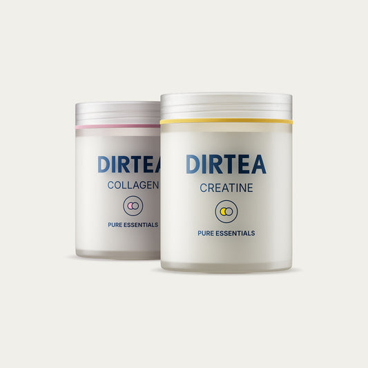 The DIRTEA Essential Set combines DIRTEA Pure Essential Creatine and DIRTEA Pure Essential Collagen, two foundational compounds designed for daily use.