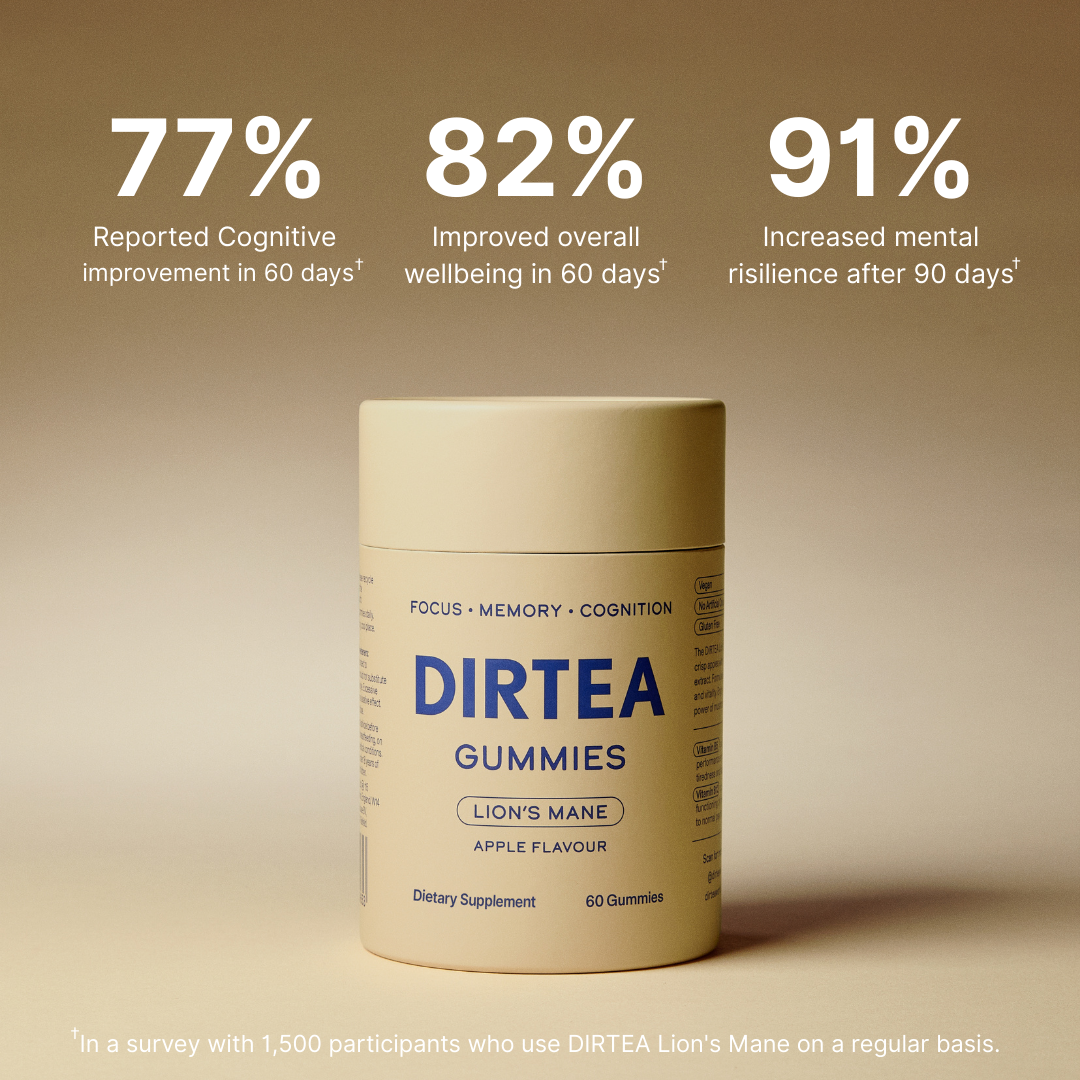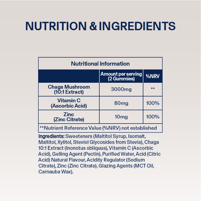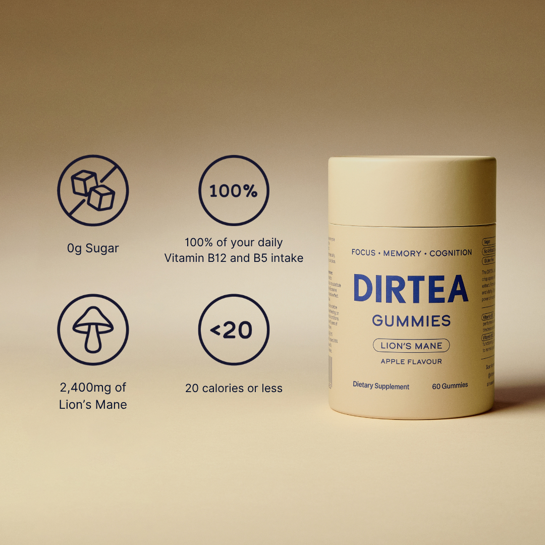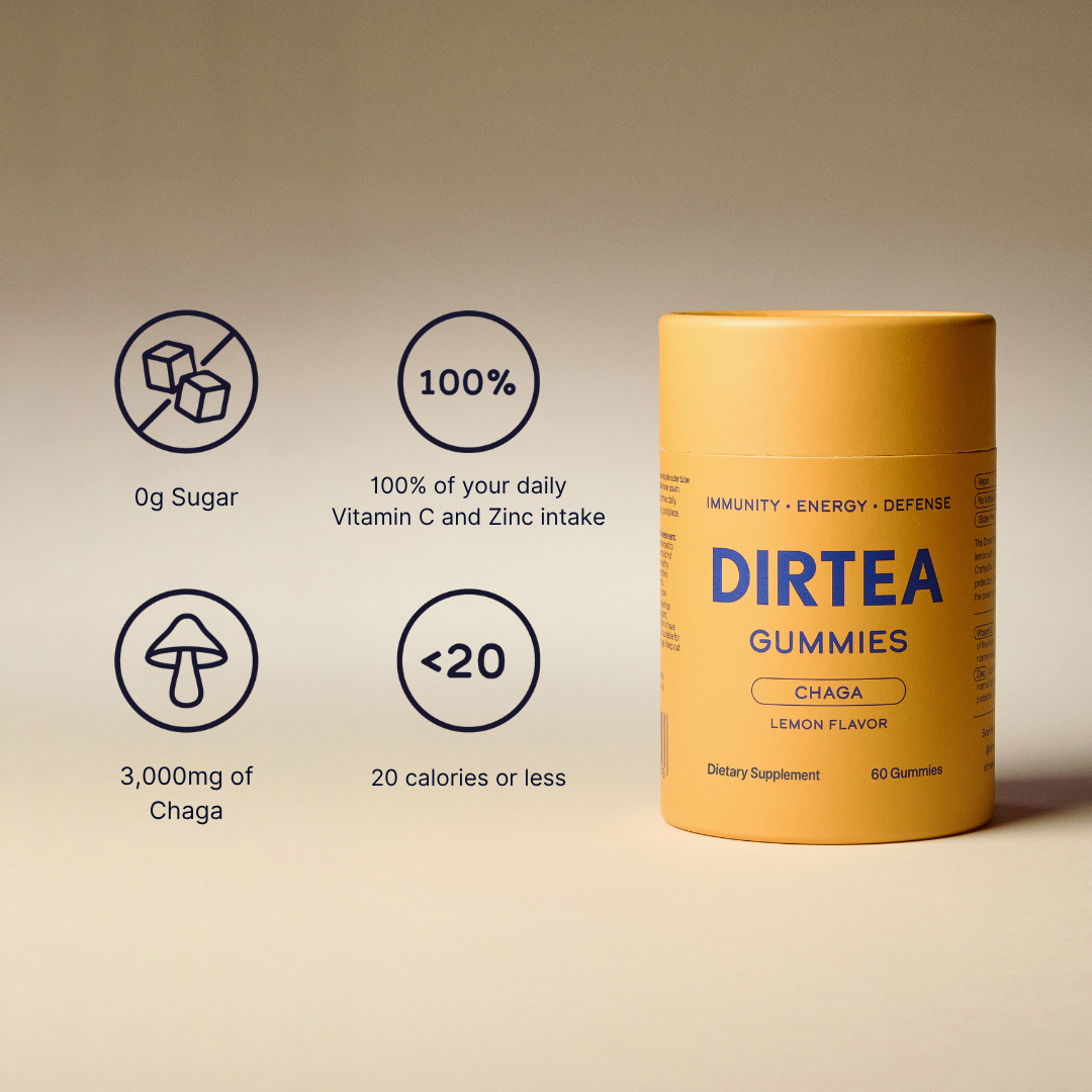 DIRTEA Chaga Mushroom Gummies - Lemon-flavoured gummies with Chaga mushroom extract, Vitamin C and Zinc.